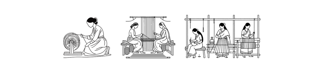 Explore breathable cotton sarees for women, elegant mundu for men, and mundu for kids. Each weave is made from fine cotton sourced from the historic mills of Nagercoil and Kannur, then woven with steady hands and thoughtful detail.